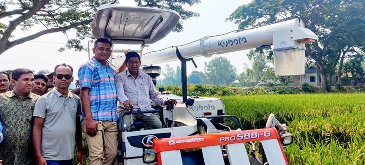 ধনবাড়ীতে ‘সমলয়’ পদ্ধতির বোরো ধান কর্তন