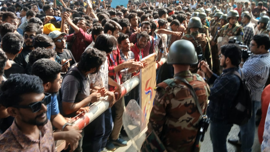 ঢাকা বিশ্ববিদ্যালয়ের (ঢাবি) অধিভুক্তি বাতিল করে ৭ কলেজের সমন্বয়ে স্বতন্ত্র বিশ্ববিদ্যালয় প্রতিষ্ঠার দাবিতে আজও রাজধানীর মহাখালীতে সংলগ্ন রেলগেট, সড়ক ও এক্সপ্রেসওয়ে অবরোধ করেছেন তিতুমীর কলেজের শিক্ষার্থীরা।