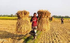 মাঠ থেকে ধান কেটে নিয়ে যাচ্ছে কৃষকরা