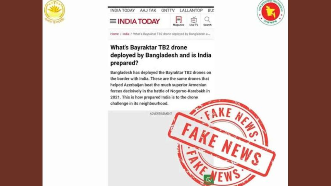 ভারতীয় সংবাদমাধ্যম ইন্ডিয়া টুডের প্রতিবেদনে ভারত সীমান্তে বাংলাদেশের পক্ষ থেকে ড্রোন মোতায়েনের যে দাবি করা হয়েছে সেটাকে ভুয়া খবর বলে দিলেন চিফ অ্যাডভাইজার (সিএ) প্রেস উইং ফ্যাক্টস। শনিবার (৭ ডিসেম্বর) প্রেস উইং ফ্যাক্টস'র ভেরিফায়েড ফেসবুক পেজে এক পোস্টে বলা হয়েছে।